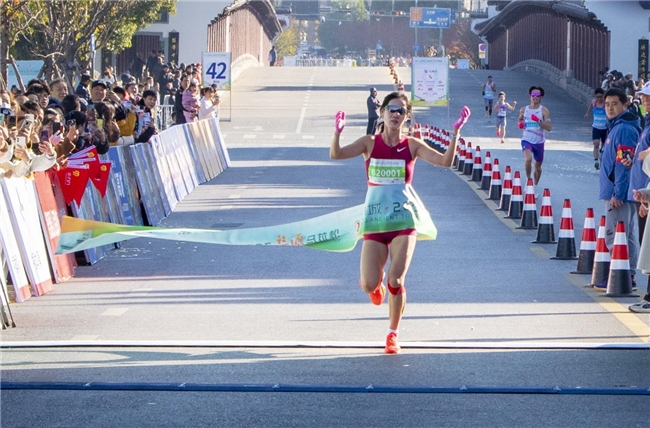 经过激烈角逐,本届赛事男女全程马拉松、半程马拉松的优胜者相继诞生。来自甘肃兰州的选手田宝强以2:20:22夺得男子马拉松冠军,来自江西宜春的选手郭小梅以2:50:15夺得女子马拉松冠军;男子半程马拉松冠军来自辽宁营口的高圣杰以1:07:51夺得,女子半程马拉松冠军来自江苏南京的选手王佳莉以1:16:52夺得。